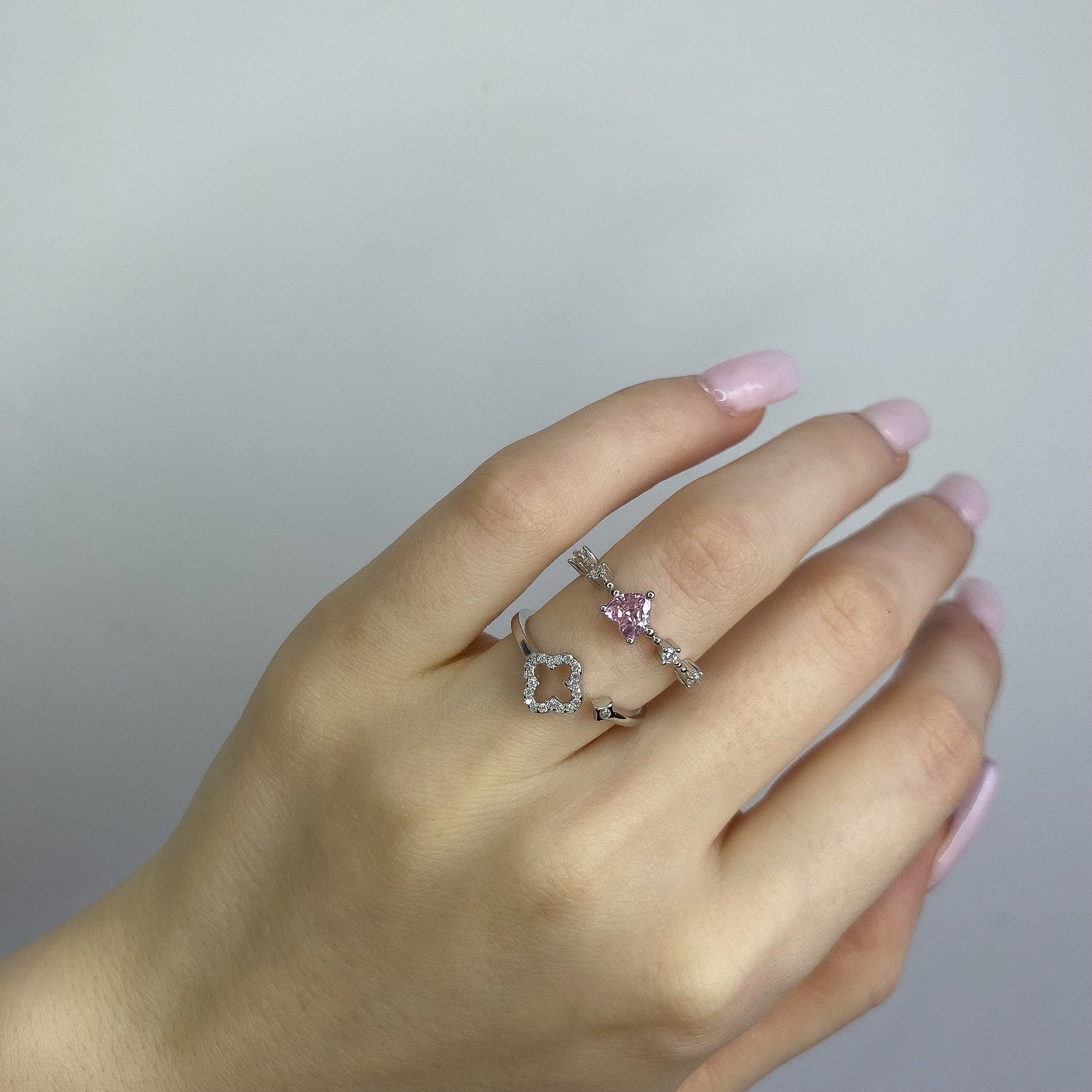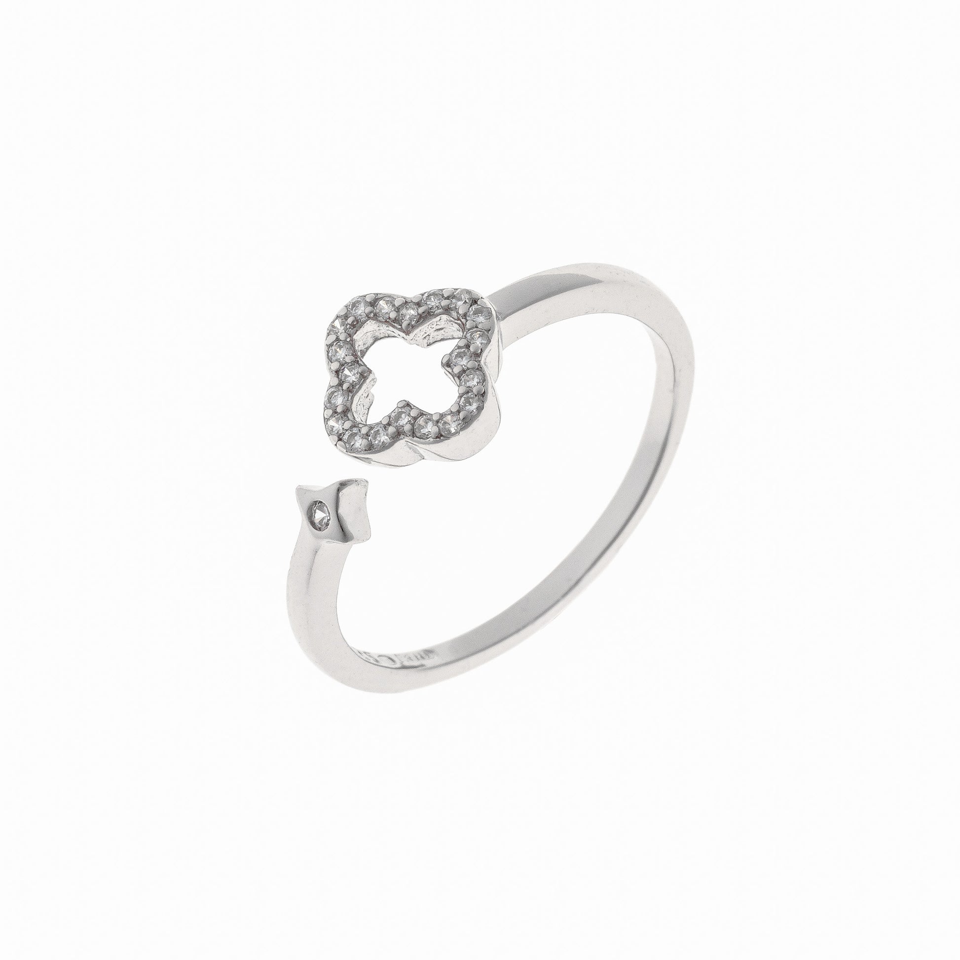 Anillo de trébol de circonita cúbica en plata de ley