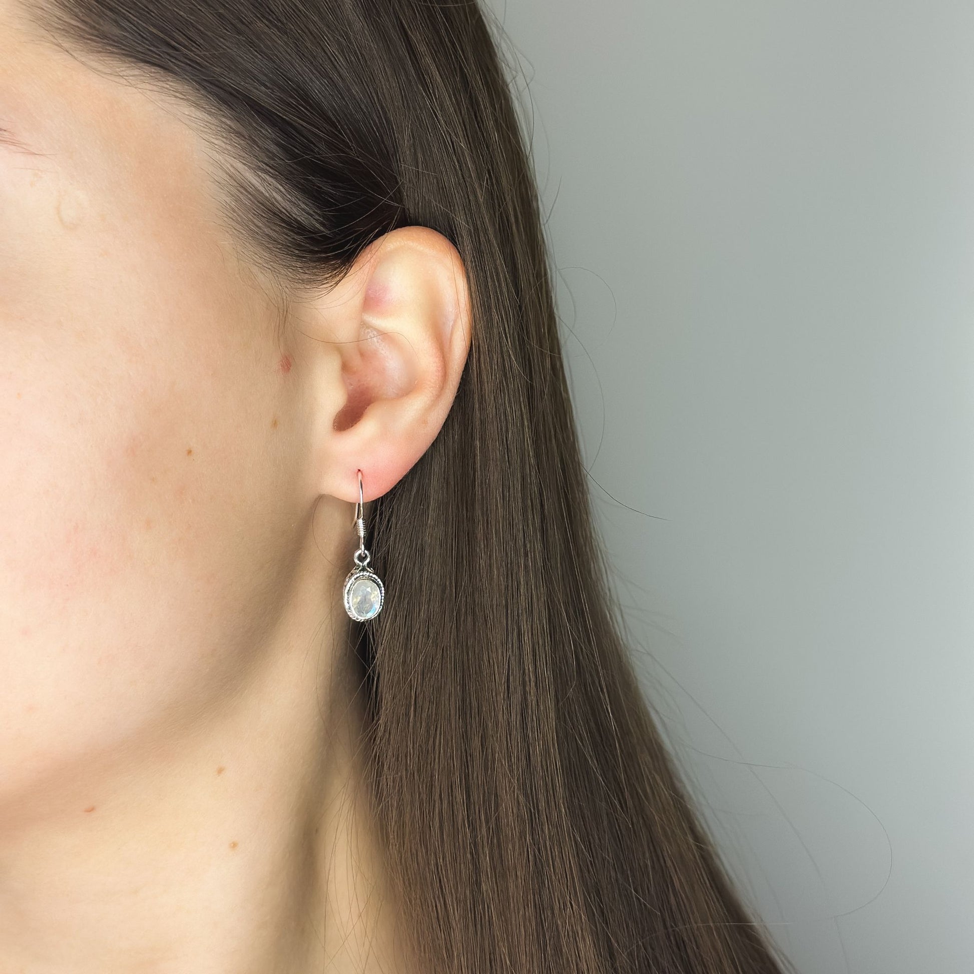 Pendientes de piedra lunar de plata de ley