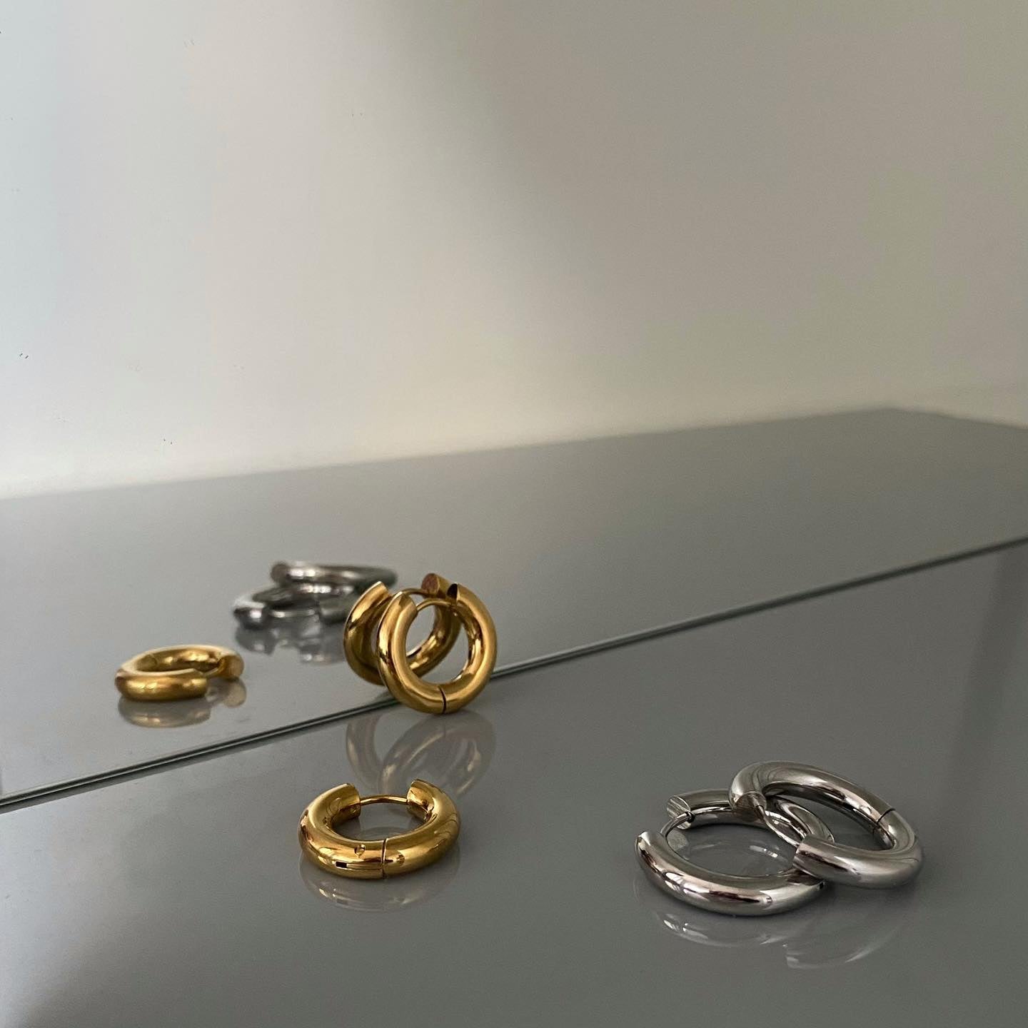 Acero inoxidable (316L). Acero de grado quirúrgico. Mucho más duradero que la plata, el oro o el platino. No se oxida, corroe, deslustra, mancha, decolora ni tiñe la piel de gris o verde.