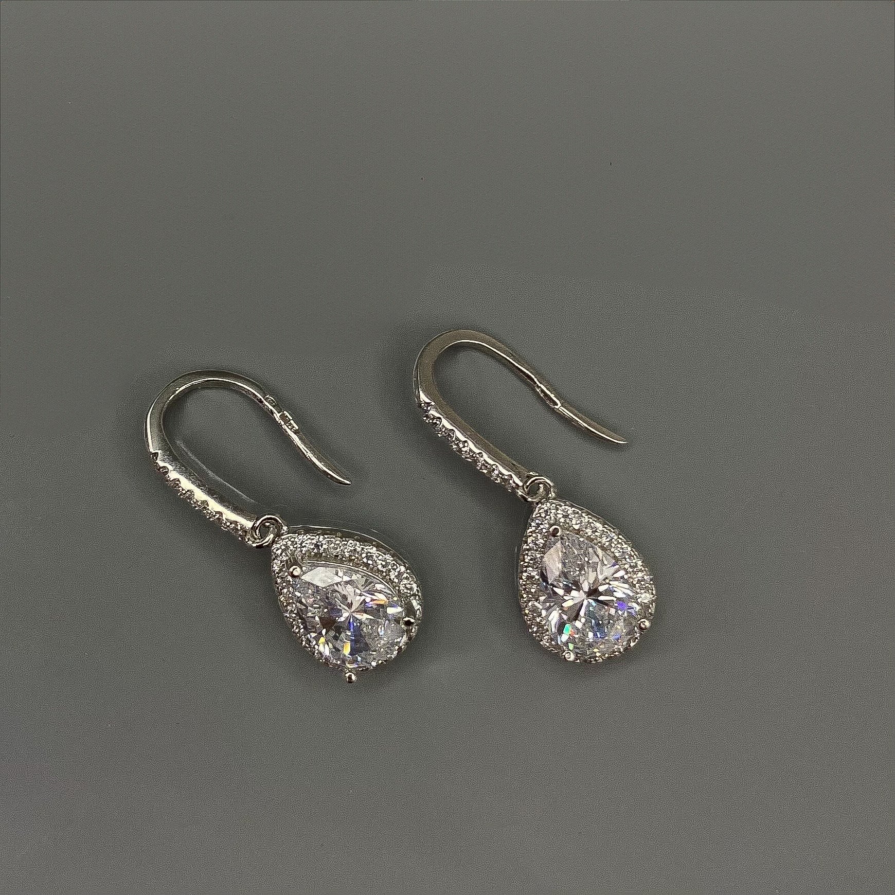 Sterling Silver CZ Teardrop Earrings